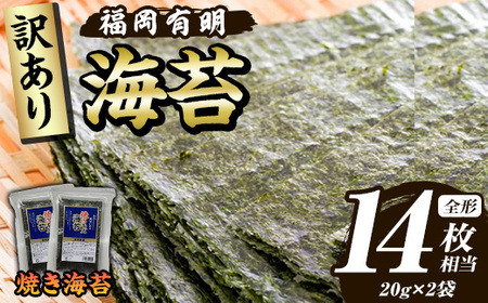 ≪訳あり≫福岡有明のり 焼き海苔(全形14枚相当・20g×2袋) 有明のり のり ノリ 焼海苔 おにぎり 常温 常温保存 小分け 福岡県 有明海産 訳アリ わけあり 不揃い 規格外 お試し おためし メール便【木村食品】as46-004